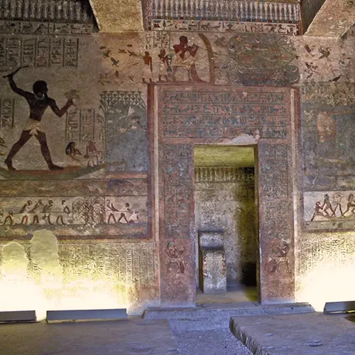 To know more about these tombs: These tombs distinguish with their decorations presenting the daily life of ancient Egyptians, especially sports as wrestling, violent warfare, and military training.