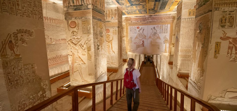 - Move to the west bank of Luxor city, where you will discover the Valley of the Kings, where you will visit three royal tombs ranging from the 18th dynasty to the 20th dynasty. These tombs belong to great ancient Egyptian Kings and were carved deep into the desert rock and richly decorated for guiding the king in his journey in the afterlife.